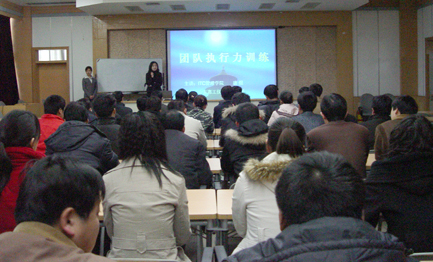 2009年3月7日,在英國ITC培訓學院的高度配合下,公司組織全體員工進行了專業的管理培訓。這次培訓的主題為《團隊執行力訓練》,主要為了增強管理人員的執行能力,促進員工在企業中的團隊意識,提高員工對工作的能動性和創造性,引導員工認可企業的文化理念,為創造一個和諧而高效率的工作環境而努力。此次培訓大會,馮俊博總經理親臨培訓會場,參加了整個的培訓過程,全體員工都積極參與,熱烈響應,會場秩序井然。